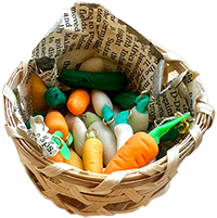 ピクルスの瓶には、樹脂粘土で作ったミニチュアフードのチャームが付いています。 これも利用者さんが一つ一つ手作業で作っています。